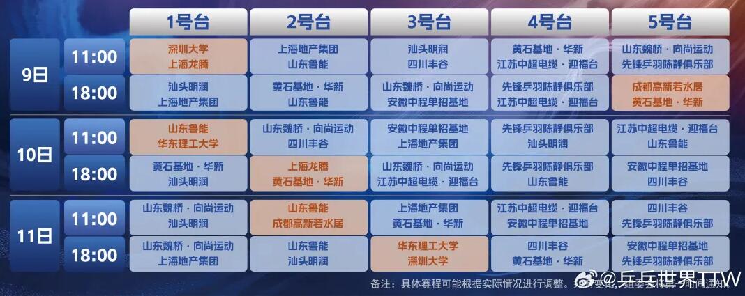 2025乒超联赛赛程直播时间表 今天(6月9日)比赛对阵名单